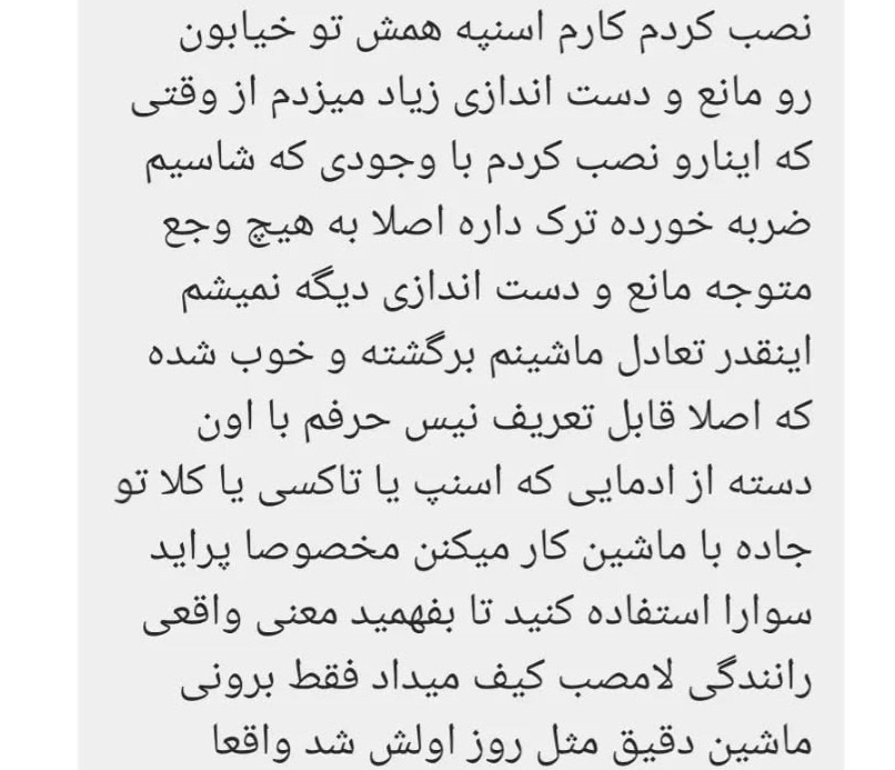این محصول به صورت فابریک نصب خواهد شد و نیازی به جوشکاری یا سوراخکاری شاسی نداره و کل نصبش با پیچ و مهره هست و اینقدر تاثیر گذار هست که به محض نصب کردن تغییرات و ثباتی که در ماشین ایجاد خواهد کرد کامل ملموس و مشهود هست