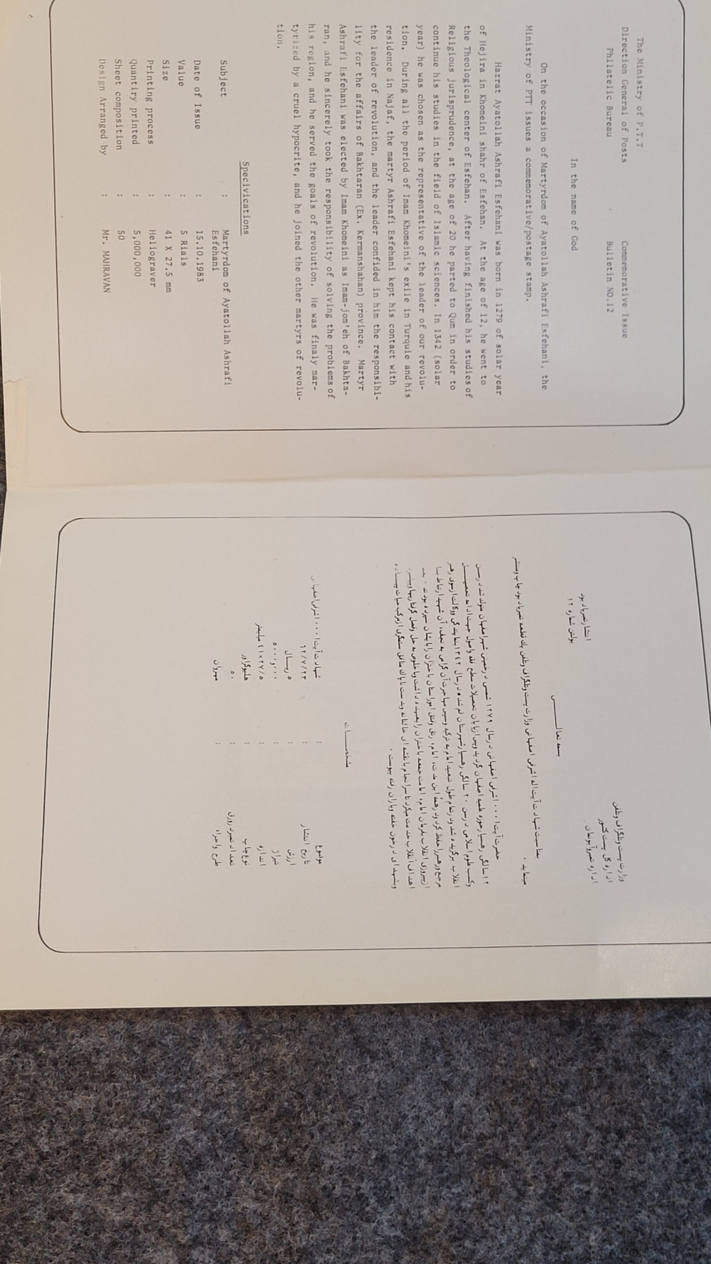 بروشور رسمی تمبر مناسبت شهادت ایت اشرفی