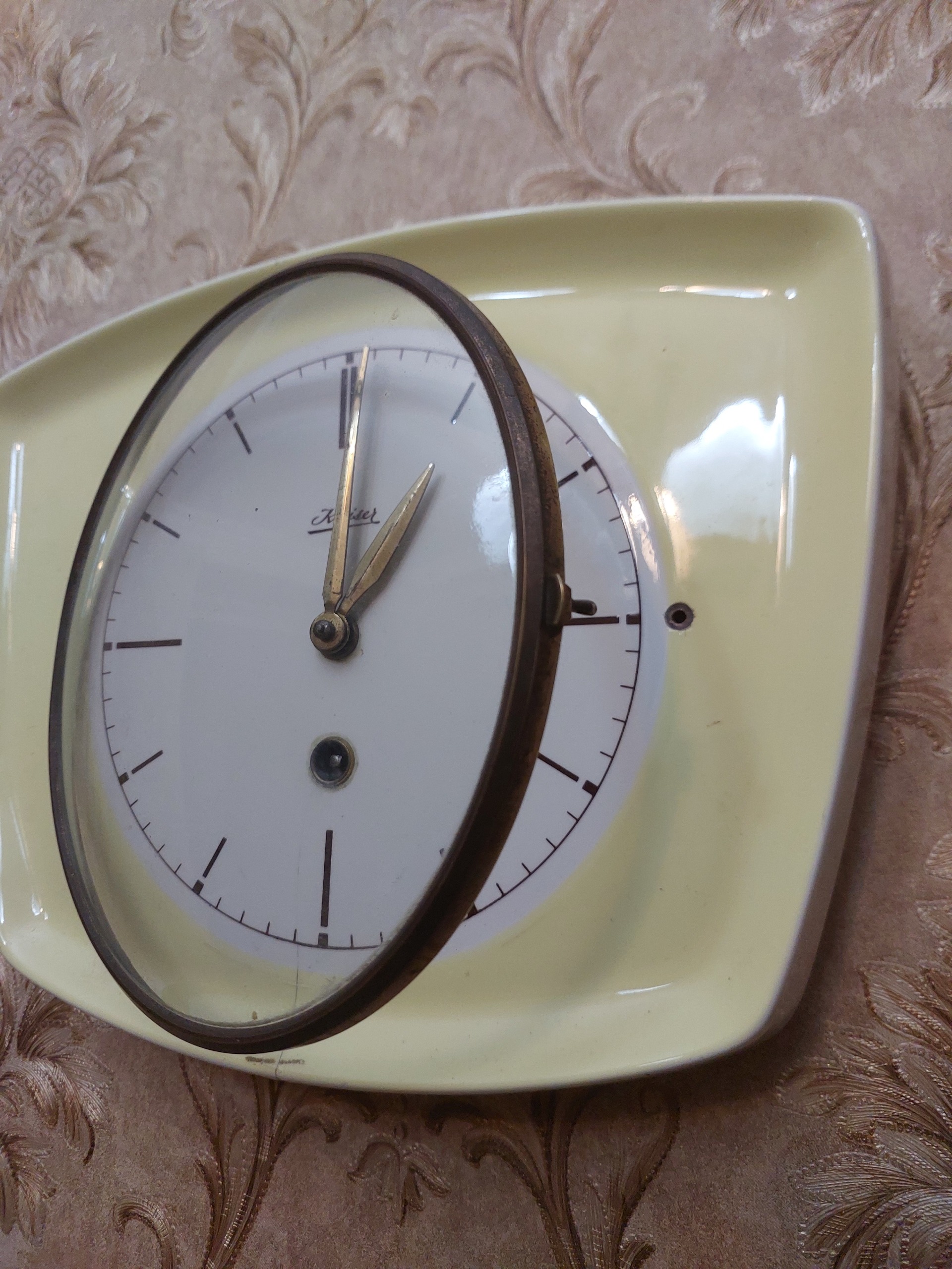ساعت ماه کوک آلمانی دیواری فقط پایین صفحه یک ترک دارد ولی کارکدش عالیه ولی عودت ندارم