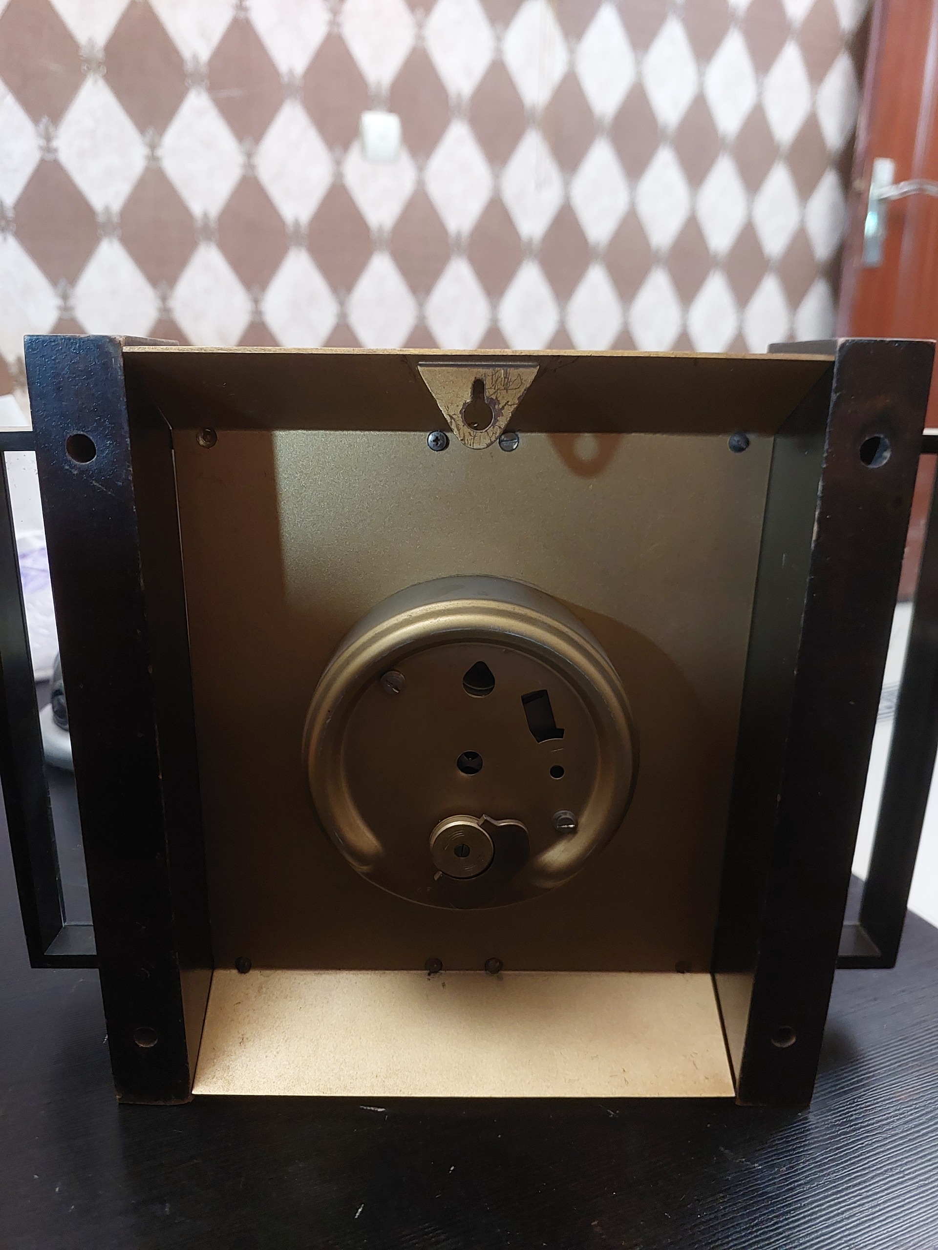 ساعت هم رومیزی و هم دیواری المانی تک کوک با قدمت بالا 70 سال که تا حدودی اکبند مانده ترکیبی از برنز و چوب کار شده حدود 4 کیلو وزن دارد ساعت مخصوص کلکسیون هست فقط عودت ندارم