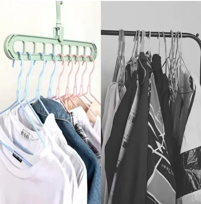 صرفهجویی در فضا: به جای استفاده از چند آویز جداگانه، 9 لباس سبک را تنها با یک قلاب میتوان آویزان کرد.