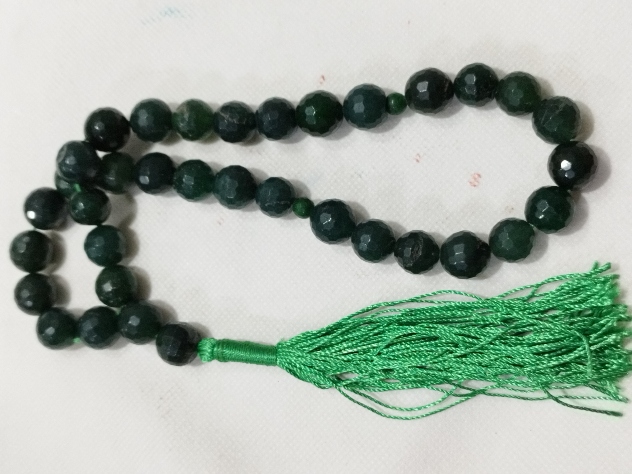 تسبیح زمرد قدیمی تمام تراش بینظیر دانه درشت