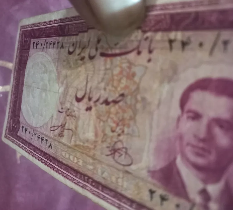 درود بر عزیزان،دوستان عزیز اسکناس صد ریال سری پنجم پهلوی، کیفیت اسکناس سالم و تمیز اما کار کرده است،و مقداری چروک شده.لطفا عکسها رو بزرگ و دقت کنید.قبل از ارسال براتون عکس ارسال میشه،در صورتیکه مطابق نظرتون نبود ،میتونید برگردونید،اما هزینهم عودت دادن به عهده خودتونه.موفق باشید.