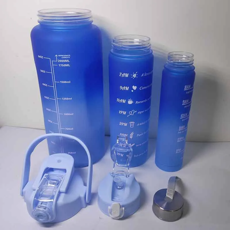 این مجموعه قمقمه مدل 3 قلو ساخت شامل 3 قمقمه با سایزهای متفاوت است که بزرگترین دو لیتر متوسط 900 میلی لیتر و کوچک 300 میلی لیتر است. قمقمه بزرگ دارای نی و آسان نوش است که میتوانید از هر کدام از سریها استفاده کنید. قمقمه متوسط دارای نی آسان نوش میباشد. و درب عمومی کوچک به صورت پیچی باز میشود. از نکات جالب این قمقمه میتوان به قابلیت قرار دادن هر دو قمقمه کوچکتر در قمقمه بزرگ و حمل راحت آن اشاره نمود. همچنین روی بدنه قمقمه مدرج است که میتوانید مقدار محتویات آن را تشخیص دهید.