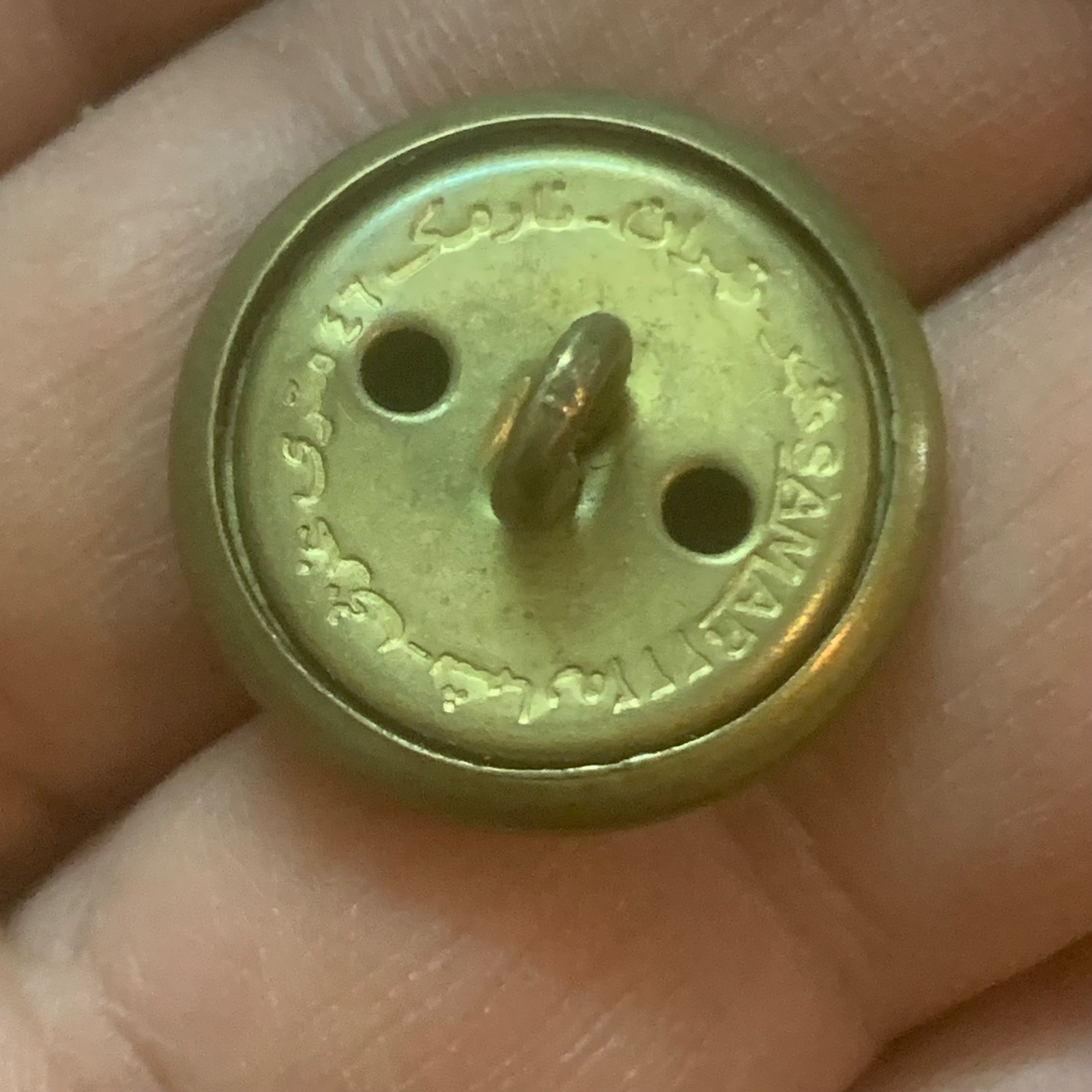 دکمه لباس نظامی دوره پهلوی با نشان شیر و خورشید