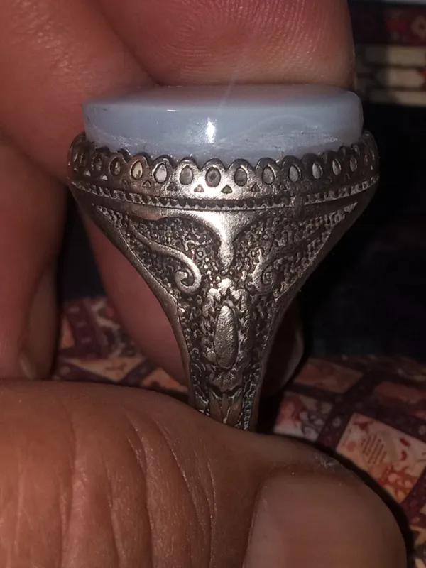 انگشترنقره عیار74عقیق سفید کمیاب