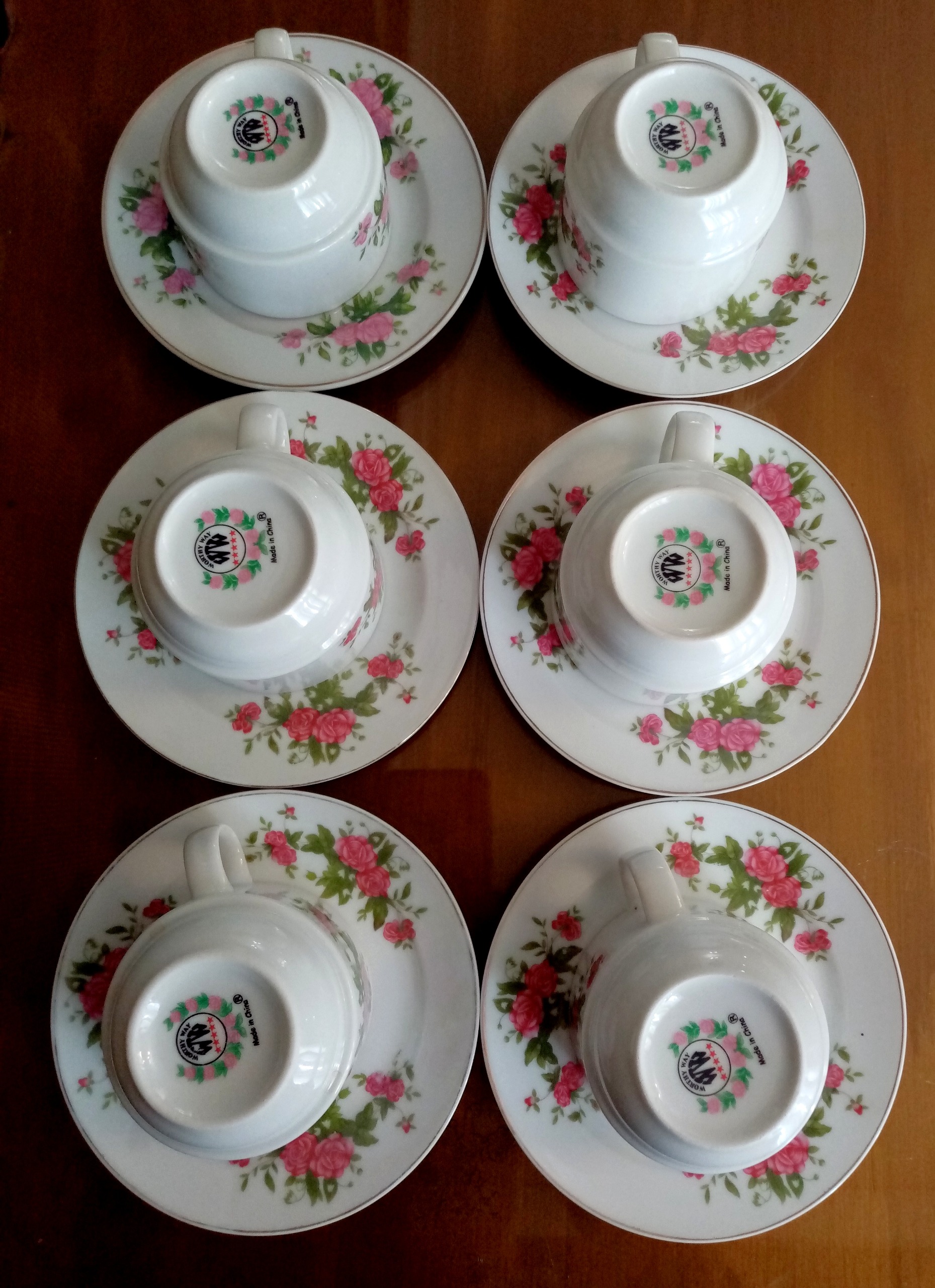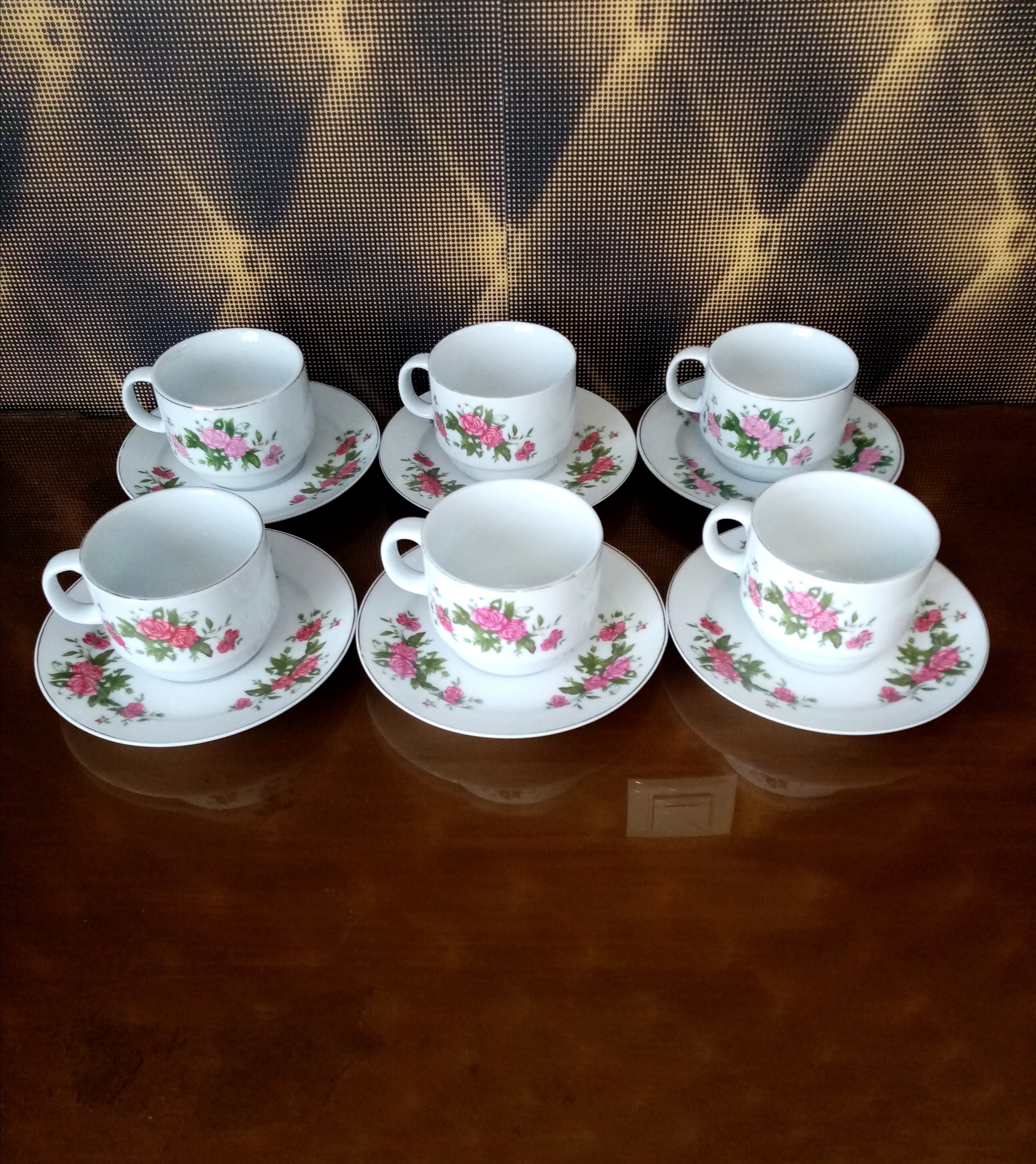 تعداد 6عدد معادل یکدست فنجان نعلبکی گلسرخی 5 ستاره، بسیار زیبا وکمیاب و کاملا سالم ودرحدنو نگهداری شده اند. قیمت برای 6عدد فنجان نعلبکی میباشد.