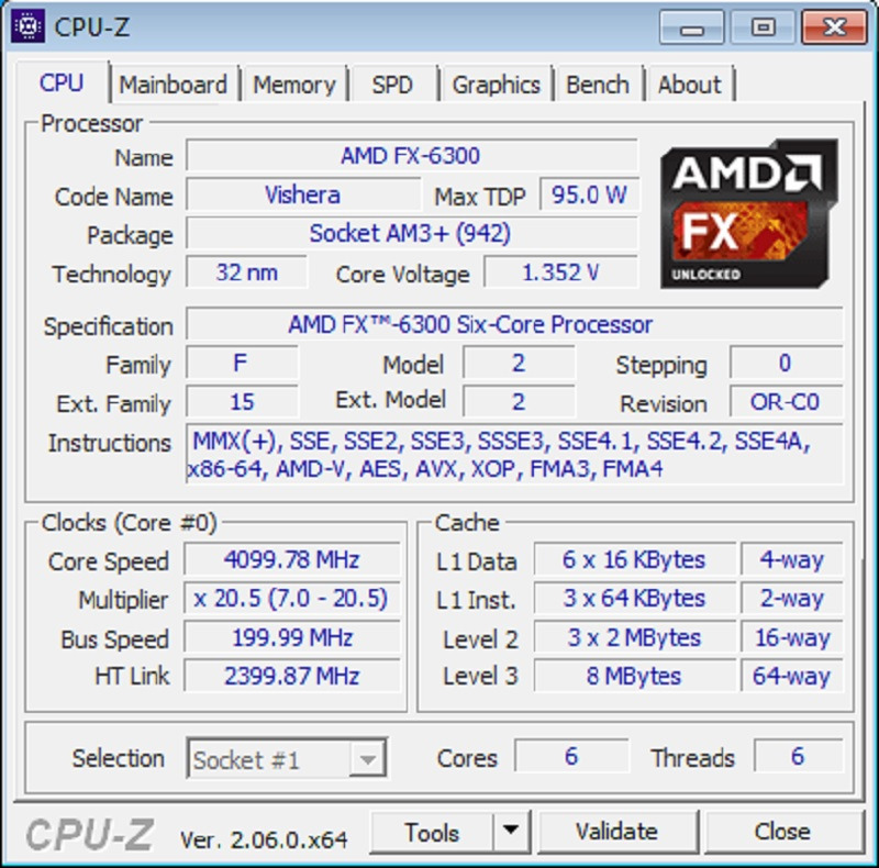 FX-6300 پردازنده قدرتمند و حرفه ای از خانواده AMD Vishera با ضریب فرکانس آزاد قابل استفاده برای سوکت +AM3 با توان مصرفی 95 وات می باشد. این پردازنده شش هسته ای دارای فرکانس پایه 3.50GHZ و فرکانس توربو 4.10GHZ و با 14 مگابایت حافظه کش سطح دوم و سوم انتخاب مناسبی برای گیم و پردازش های سنگین است.