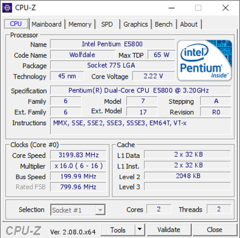 مشخصات فنی پردازنده intel E5800