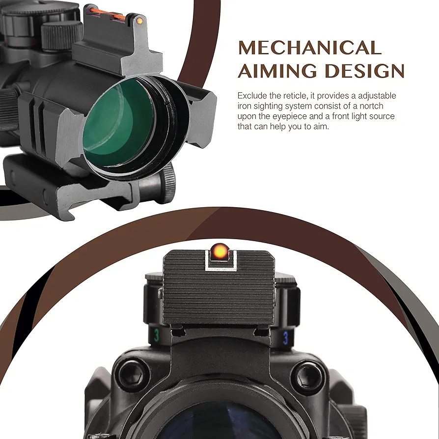 دوربین تفنگ AOMEKIE 4X32mm Airsoft Red Dot Sight با نشانگر فیبر نوری بالا و پایه ریلی پیکاتینی 11/22 میلی متری برای شکار