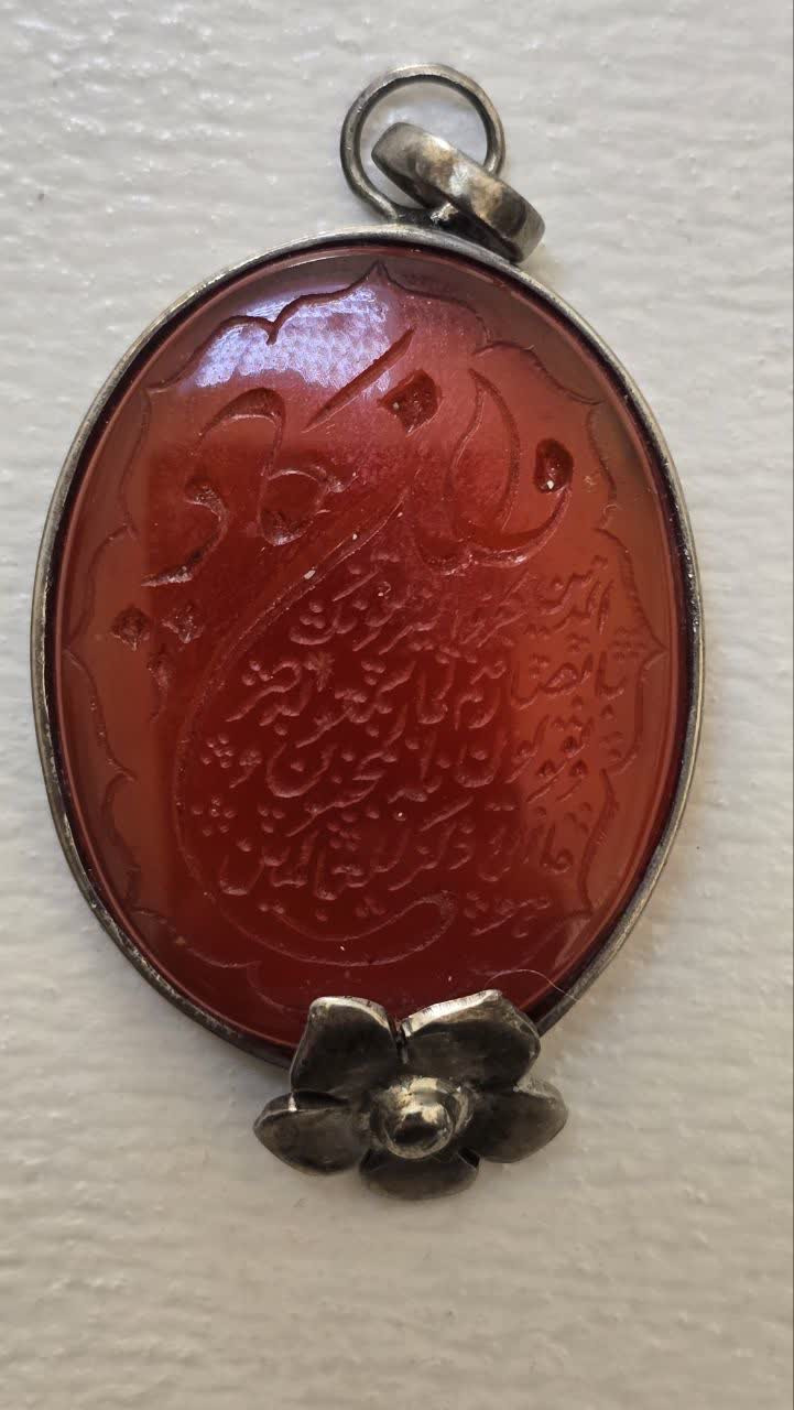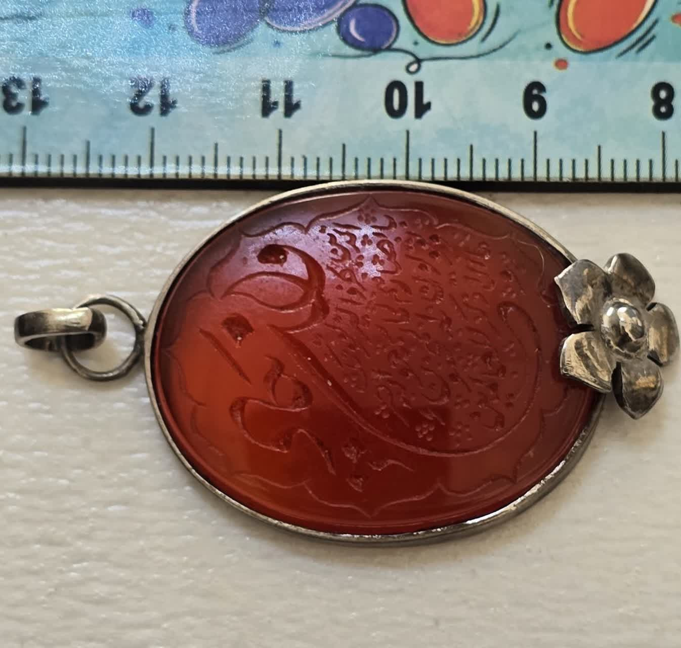 گردنی نقره دستشاز سنگ عقیق حکاکی و ان یکاد