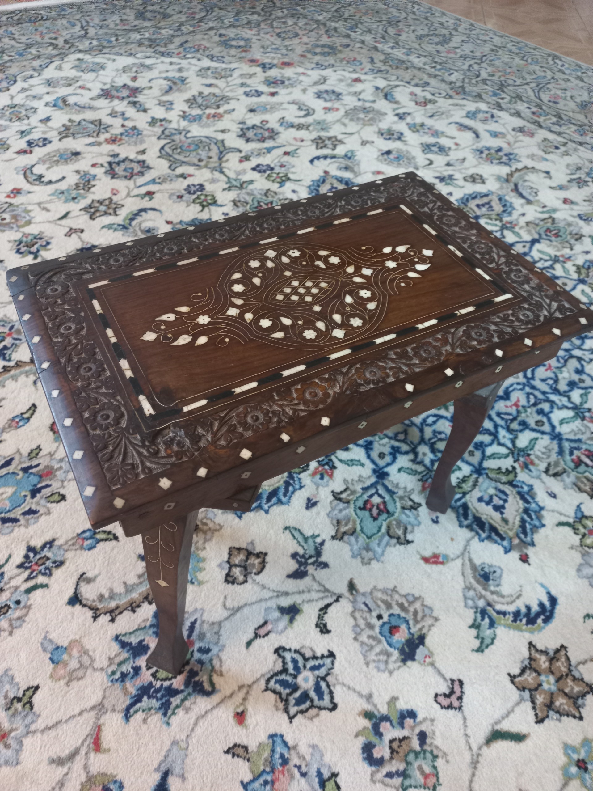 میز چوبی کارشده شده با عاج فیل اصل .ساخته ی کشور مصر با قدمت 60 ساله