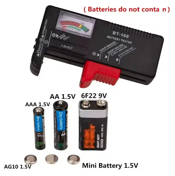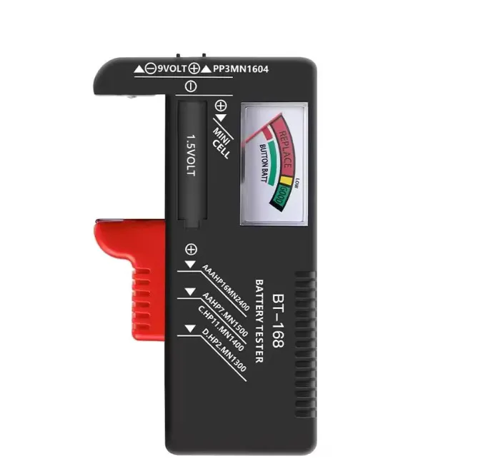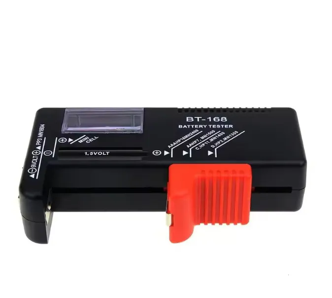 این دستگاه تستر باتری BT-168 یک ابزار ساده و کاربردی برای بررسی سلامت انواع باتری است. با آن میتوانید بهسرعت متوجه شوید که باتری شما سالم است، شارژ کمی دارد یا باید تعویض شود. این تستر بدون نیاز به باتری جداگانه کار میکند و قابلیت تست باتریهای قلمی (AA,