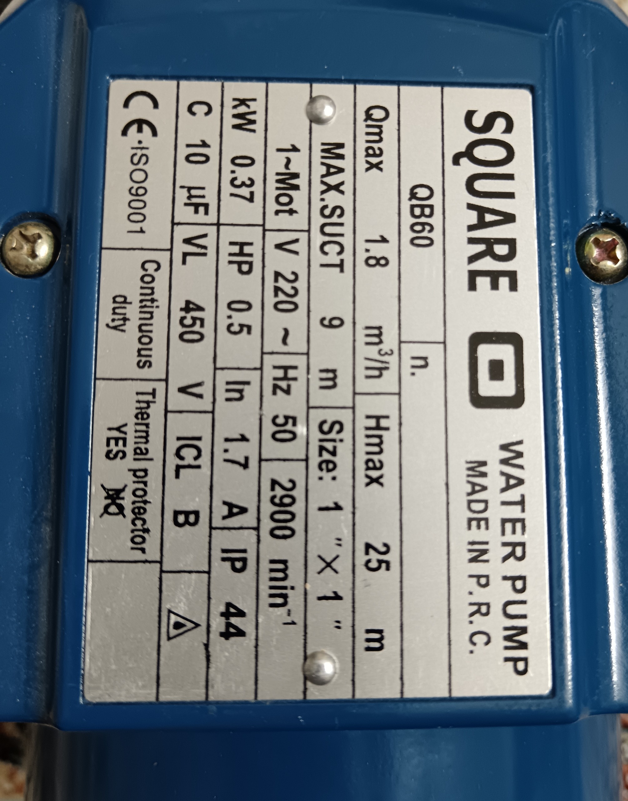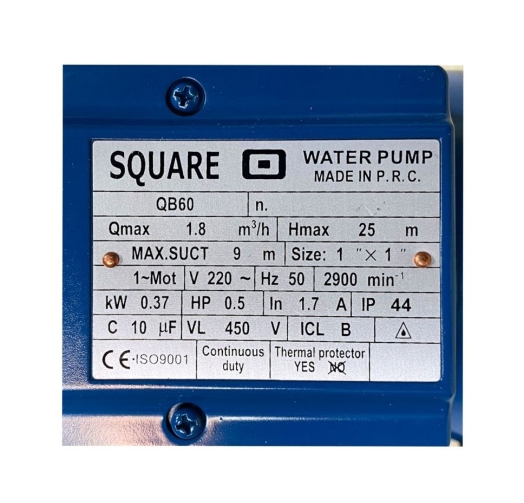 پمپ آب نیم اسب بخار مدل QB60برند اسکواری