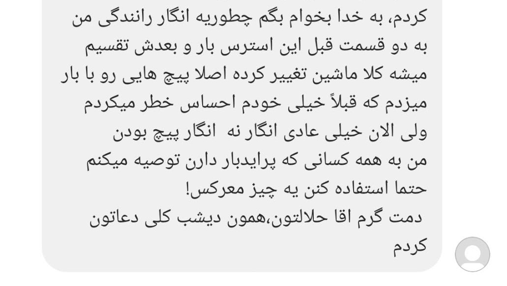 ضربات و فشاری که به جلوبندی و سیستم تعلیق ماشین وارد میشه را، استرس بار بین دو طرف ماشین تقسیم میکنه و خرابی قطعات جلوبندی و سیستم تعلیق خیلی کمتر خواهد شد.