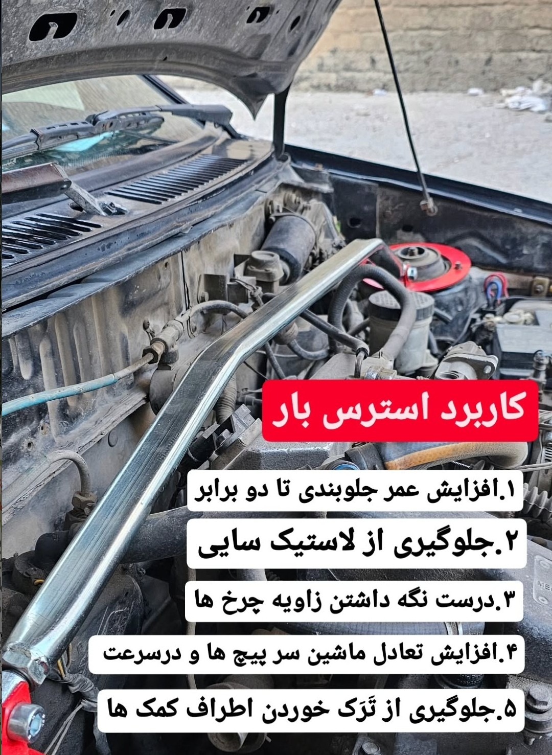استرس بار قطعهای فلزی است که معمولاً به صورت یک میله افقی یا عمودی بین دو بخش از سیستم تعلیق خودرو نصب میشود. این قطعه به منظور کاهش حرکات اضافی و تغییرات زاویه ای برنه و شاسی طراحی شده است. استرس بار معمولاً در محور جلویی یا عقبی خودرو نصب میشود و به بهبود تعادل و پایداری خودرو کمک میکند.