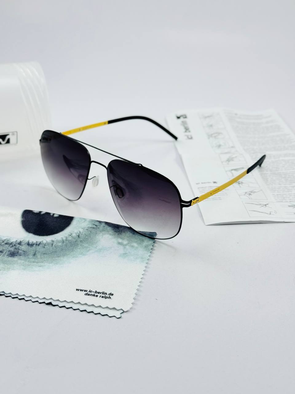 IC! Berlin با طراحی خلبانی و تنوع رنگی فریم (طلایی/مشکی، طلایی/قهوهای، قهوهای/قهوهای، مشکی/مشکی، نقرهای/مشکی، نوک مدادی/مشکی) و عدسیهای هایلایت، به شما این امکان را میدهد که عینکی متناسب با سلیقه و استایل خود انتخاب کنید. این عینک برای صورتهای بزرگ و متوسط مناسب است و با اقلام همراهی همچون دستمال عینک نانو، شناسنامه برند و هارد کیس عرضه میشود.