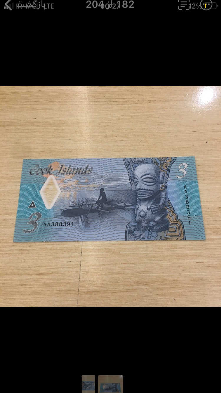 یک برگ اسکناس 3 دلار کوک آیسلند کیفیت بانکی