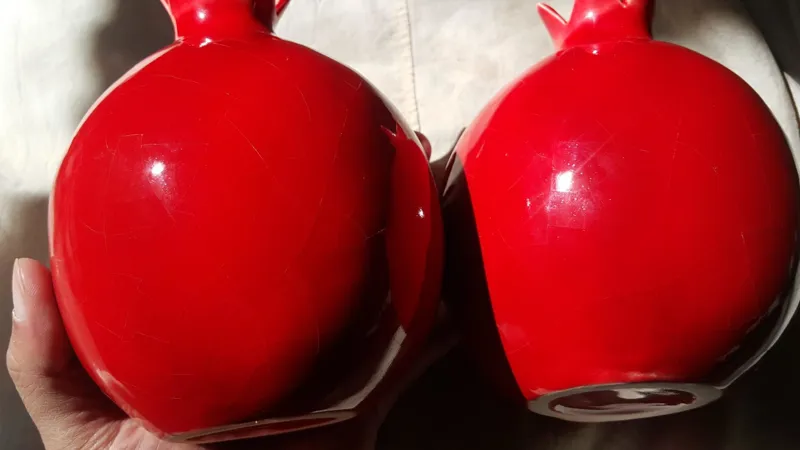 توجه کنید از دو مجسمه سرامیکی ایرانی قرمز رنگ موجود یکی قوطی ندارد