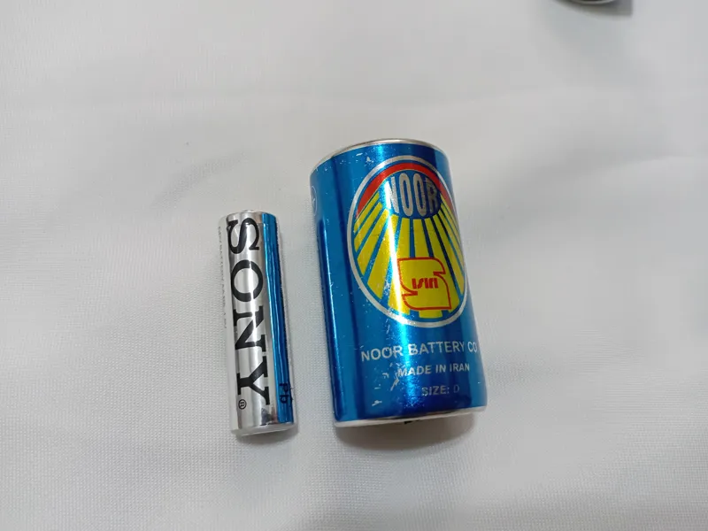 باتری قدیمی نور آکبند تولید قدیم برای حدود 20 سال پیش جنبه کلکسیون دکور داره . کمیاب . برای مقایسه یک باتری قلمی جدید کنارش گذاشتم تا اندازه دقیق متوجه بشید