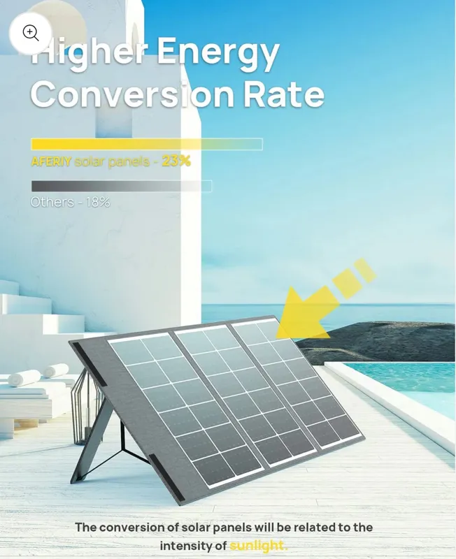 تبدیل بالا] - پنل خورشیدی AFERIY 100W با سلولهای خورشیدی سیلیکونی مونوکریستالی با راندمان بالا استفاده میشود، نرخ تبدیل تا 23٪ است.