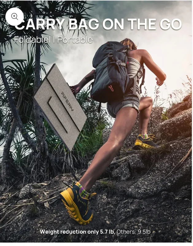 پنل خورشیدی قابل حمل AFERIY 100W 18V Monocrystalline Foldable Solar Panel مناسب برای ژنراتور برق با پایه قابل تنظیم، جعبه اتصال، IP65 ضد آب برای کمپینگ، RV Garden