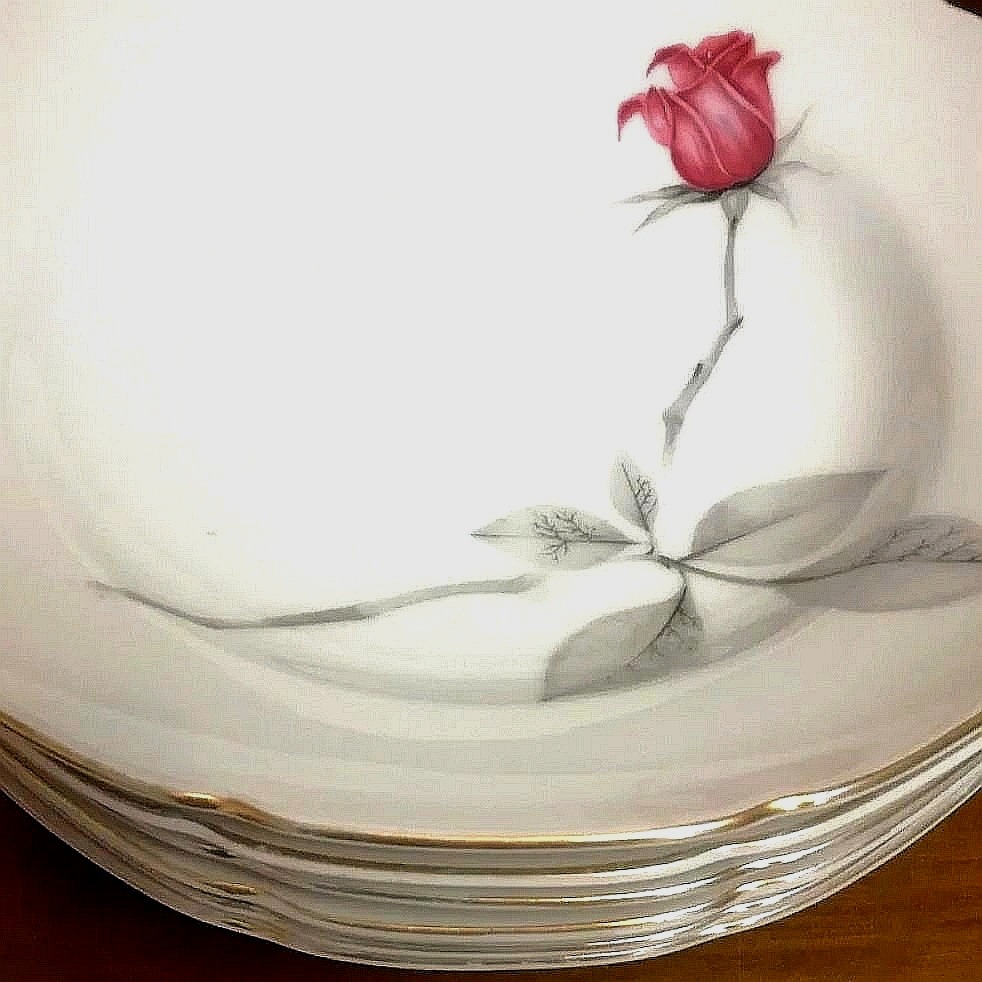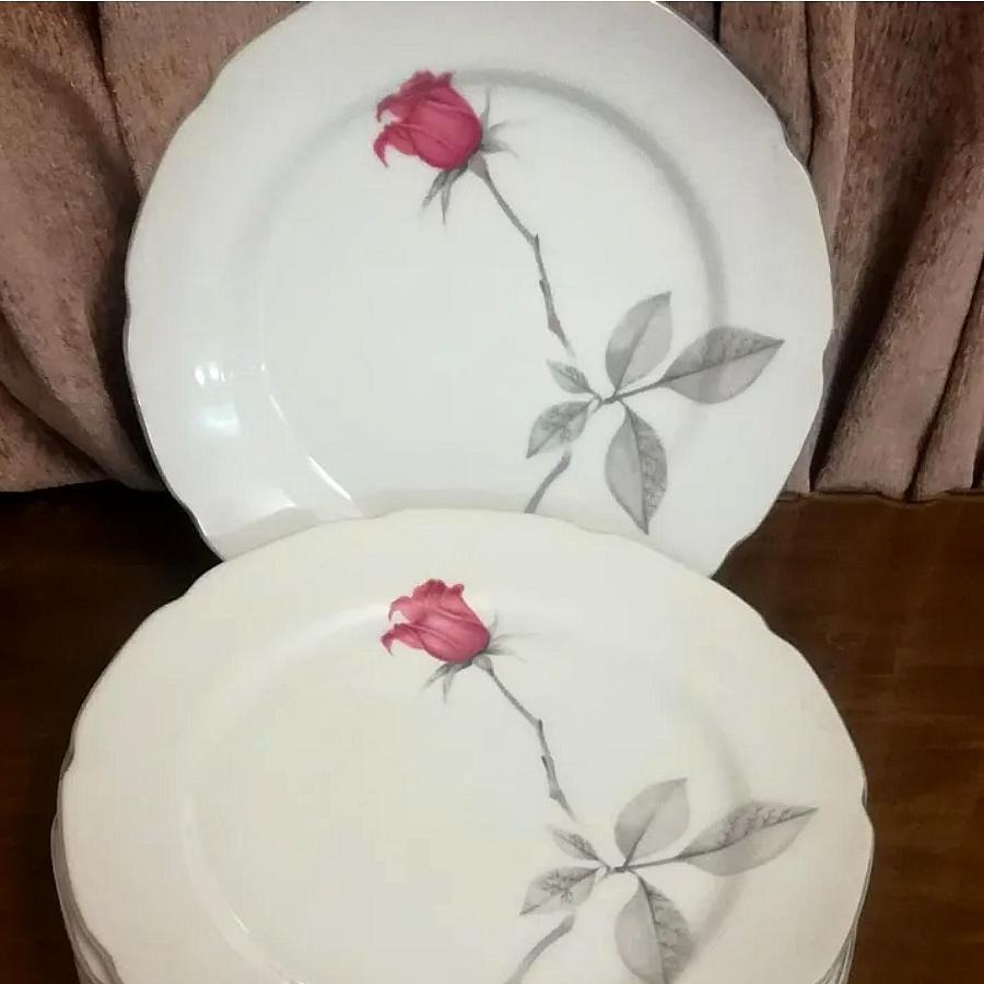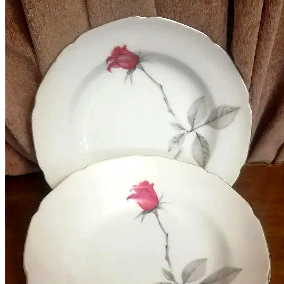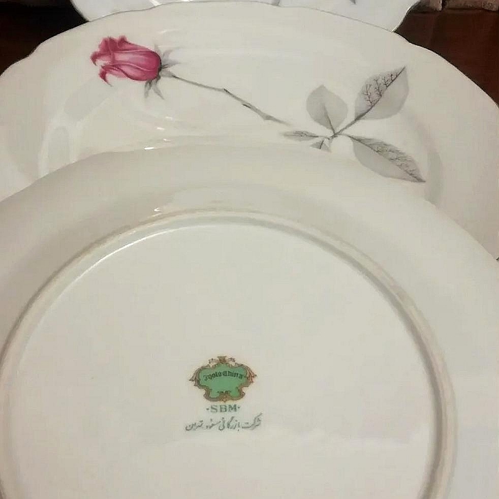2دست بشقاب بسیارزیبای رز تک شاخه شاهکاری بی تکرار از چینی سلطنتی بازرگانی مسعود،6عدد پلوخوری 23سانت و6عدد خورش خوری 23سانت،کاملاسالم با دور طلایی لبه ها، قیمت درج شده برای هر 2دست (12 عدد) میباشد.