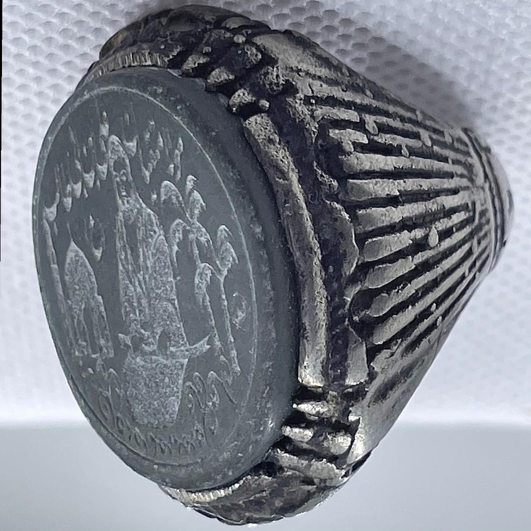 انگشتر یشم کهنه حکاکی امضادار خاص پرکاهویی
