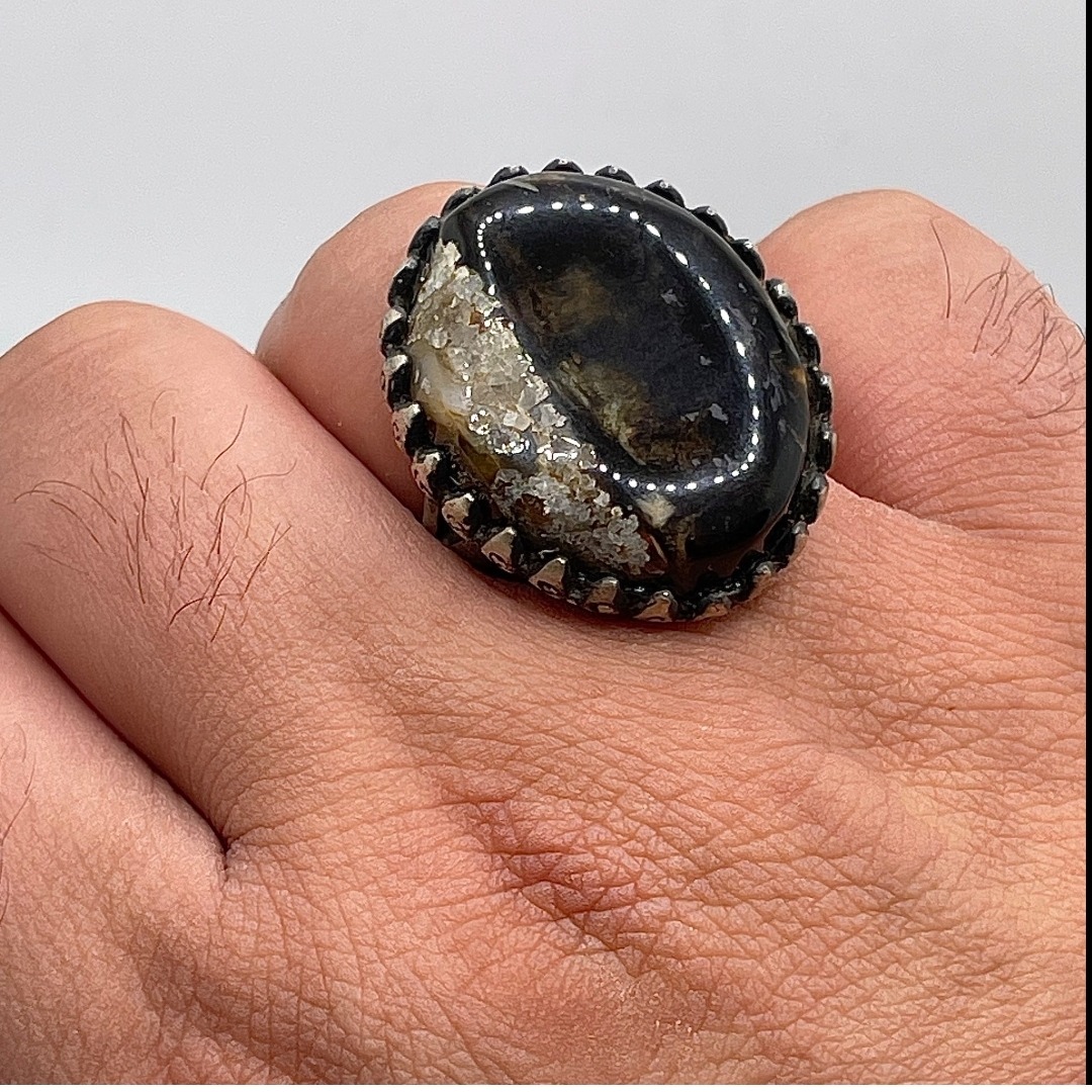 انگشتر گبری مهره تراش 200 ساله از جنس سنگ یسر