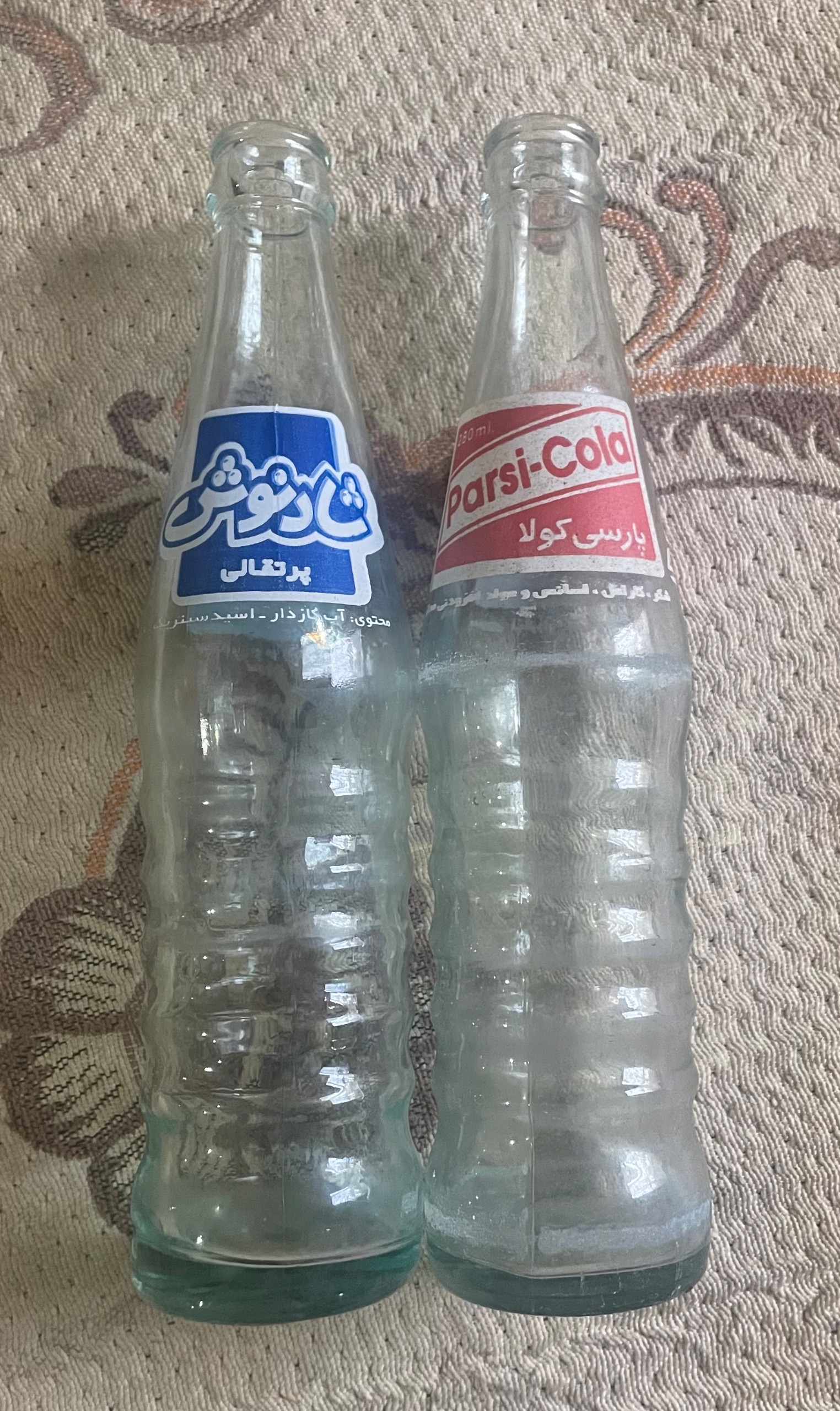دو عدد شیشه نوشابه پارسی کولا و شادنوش قدیمی