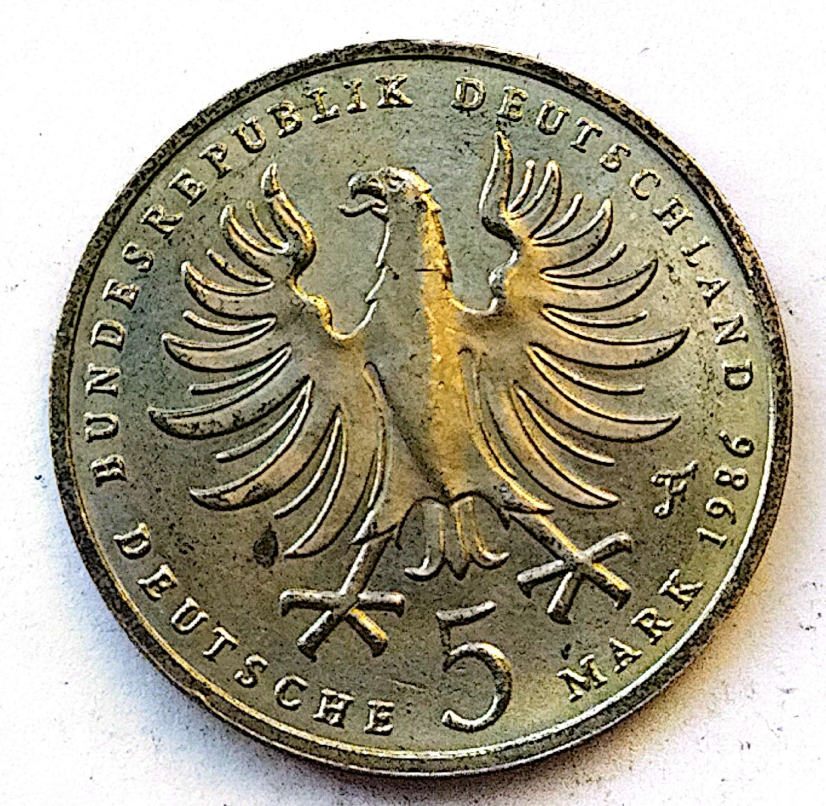 سکه 5مارک یادبودیآلمان1986(کد7300)