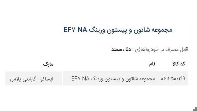 مجموعه شاتون و پیستون و رینگ سمند EF7 دنا ایساکو