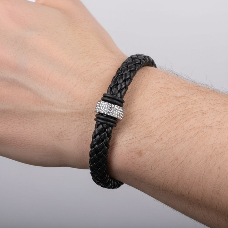 وجود قطعه فلزی تزئینی در بخش میانی، جلوهای مدرن و متفاوت به این دستبند داده است. استفاده از قفل فلزی مگنتی نیز باعث میشود که دستبند بهراحتی باز و بسته شود و در عین حال امنیت کافی برای استفاده روزمره فراهم گردد.