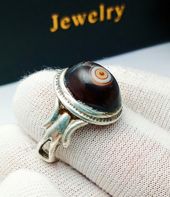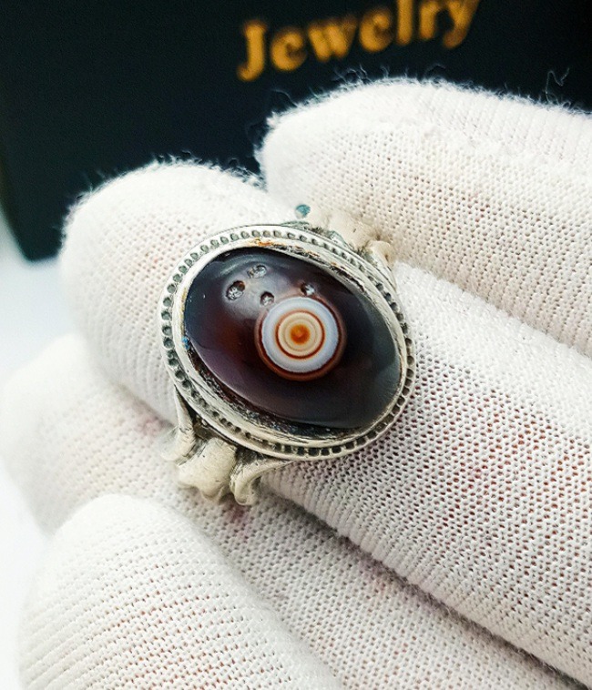 انگشتر زیبا و کلکسیونی باباقوری تک خال منظم و پرگاری