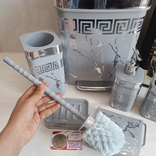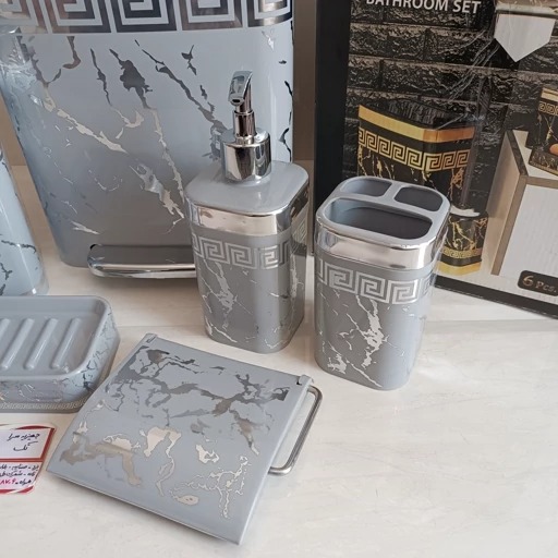 ست بهداشتی 6 پارچه ماربل از جنس پلاستیک بسیار زیبا وبصرفه شامل جامایع،جاصابونی،فرچه،سطل،جادستمالی، جامسواکی