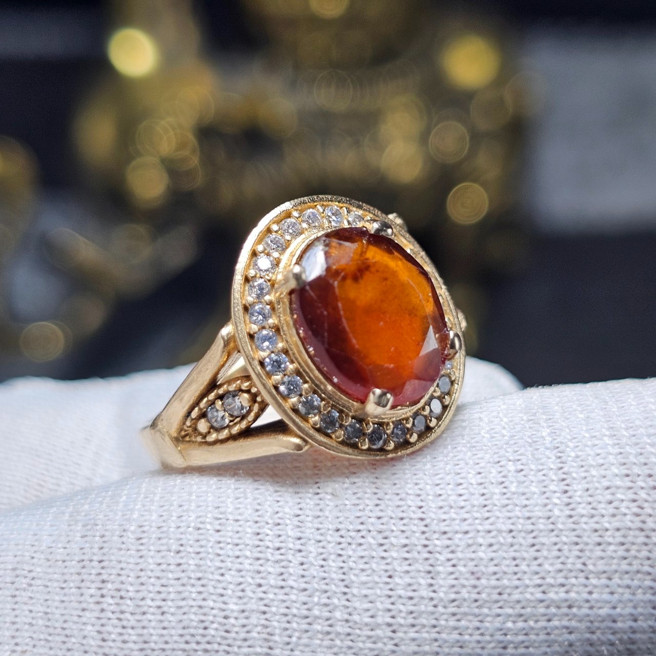 انگشتر طلا روس با سنگ گارنت معدنی 36137