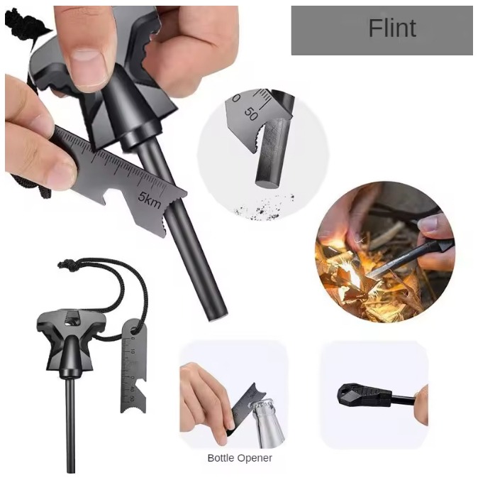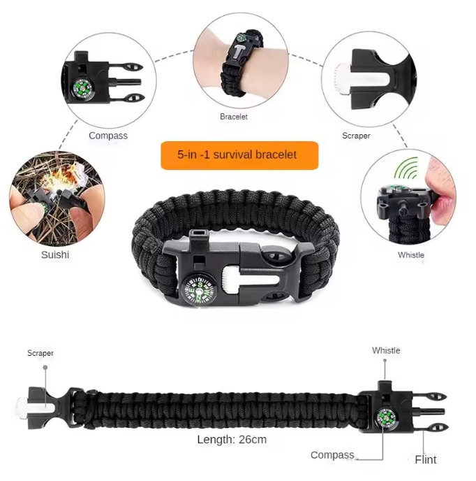 دستبند بقا 5کاره (آتشزنه، سوت اضطراری، قطبنما، ابزار برش و طناب مقاوم)