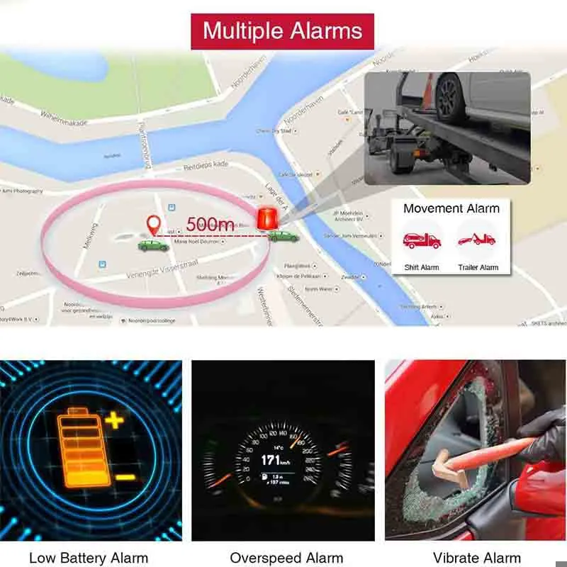 چندکاره - ترکری لحظهای، حصار جغرافیایی، نمایش مسیر گذشته، حسگر القایی، هشدار بیش از حد از حد، هشدار لرزش، هشدار کم بودن توان، حالت صرفهجویی در مصرف برق. هشدار با ارسال پیامک به شماره مدیر. طراحی ضد آب IP65، ضد گرد و غبار، مقاوم در برابر ضربه.