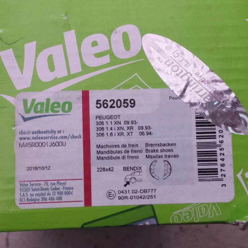 یک دست 4 عددی لنت کفشکی ترمز چرخ عقب پژو 405 مدل های قدیم - مارک والئو ساخت کشور چین  - قیمت برای یک دست 4 عددی چرخ عقب میباشد