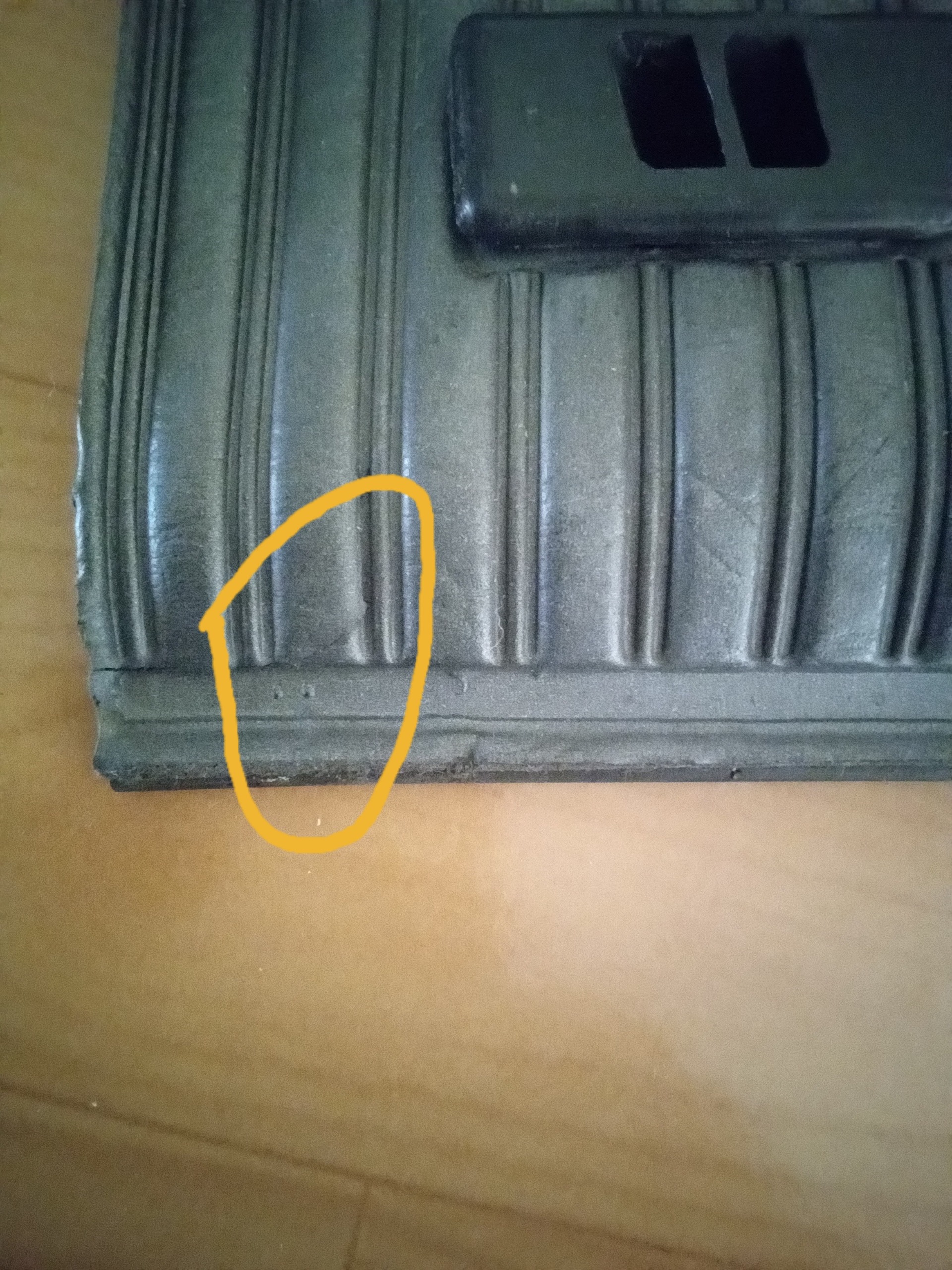 دو تا زدگی کوچیک داره که در تصویر با خط زرد و قرمز مشخص شده.