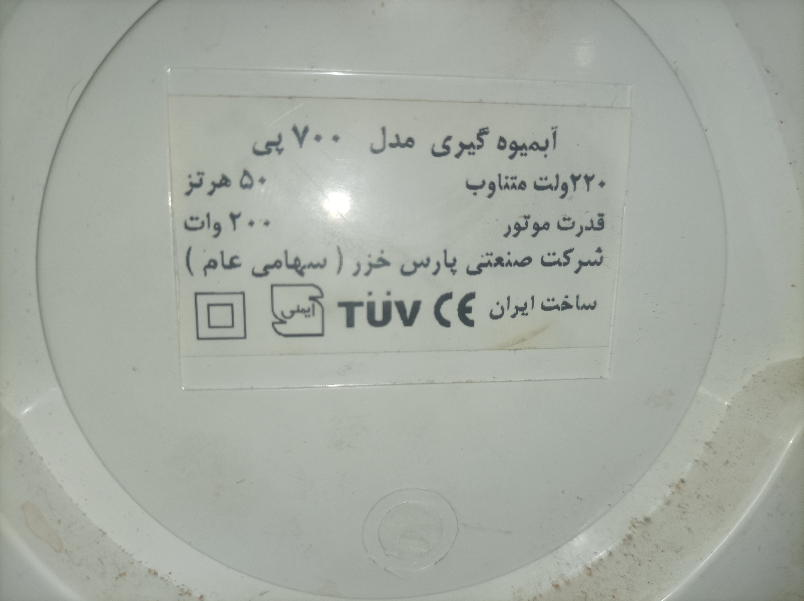 یک موتور آبمیوه گیری پارس خزر خالی سالم بدون وسائل قطعاتش گم شده