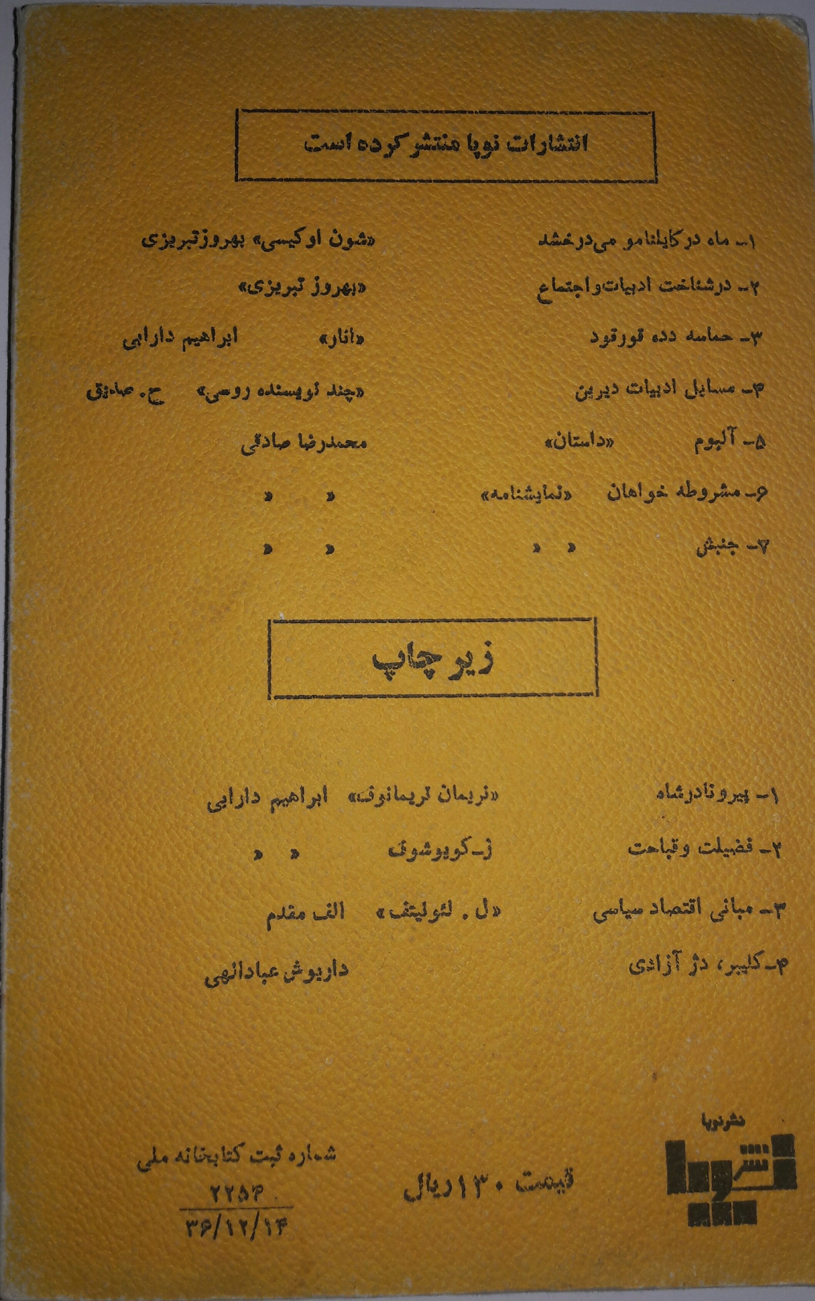 اصول علم اقتصاد ، ترجمه و تلخیص : عبدالحسین نوشین ، انتشارات نوپا ، تهران زمستان 2536 ، 156 صفحه کامل و سالم قطع رقعی