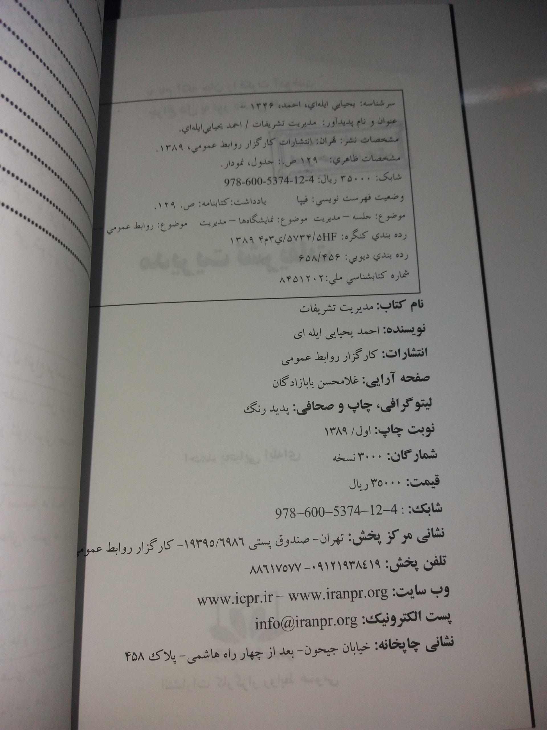 مدیریت تشریفات ، دکتر احمد ایله ای ، کارگزار روابط عمومی ، چاپ اول 1389 ، 129 صفحه کامل و سالم قطع رقعی