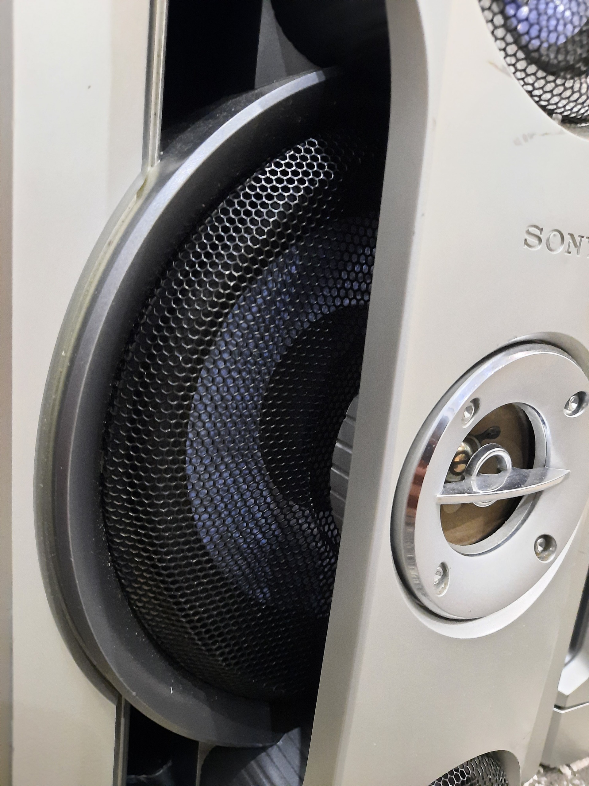 یک عدد از سوراند ها صفحه اش دفرمه و یکم ترک داره که چسب خورده، در صدا مشکلی ندارد از پشت توری زیاد مشخص نیست