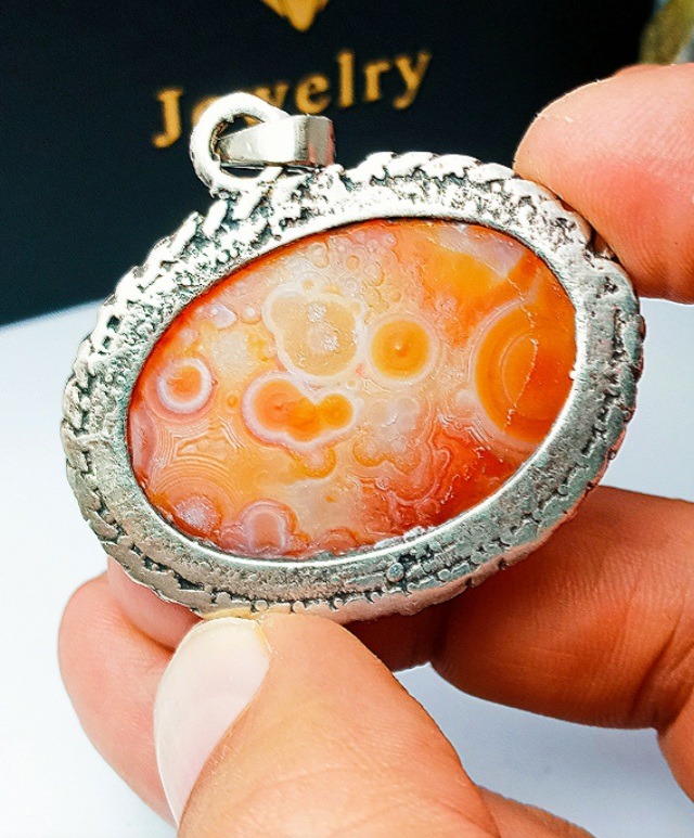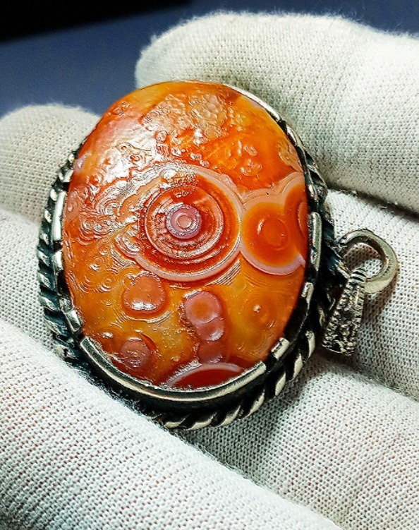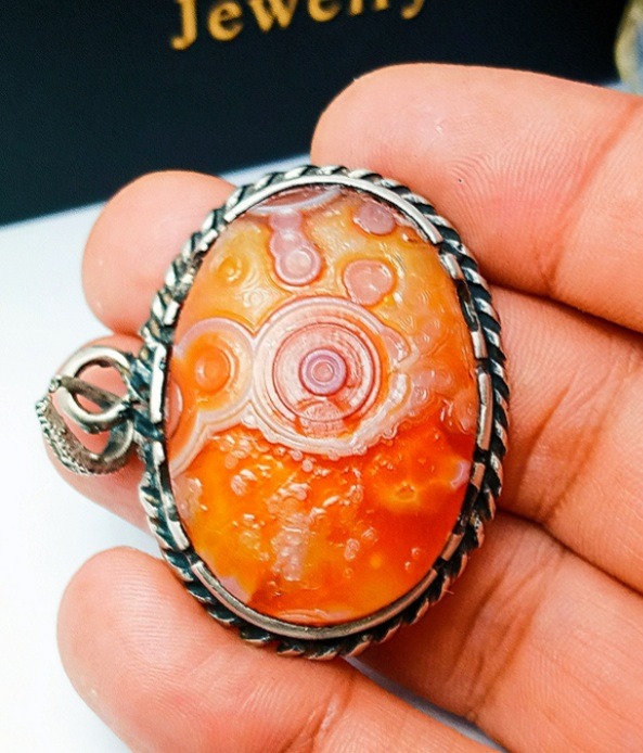 اویز گردنی زیبا سنگ باباقوری یمنی خوشرنگ و زیبا سمبه دار