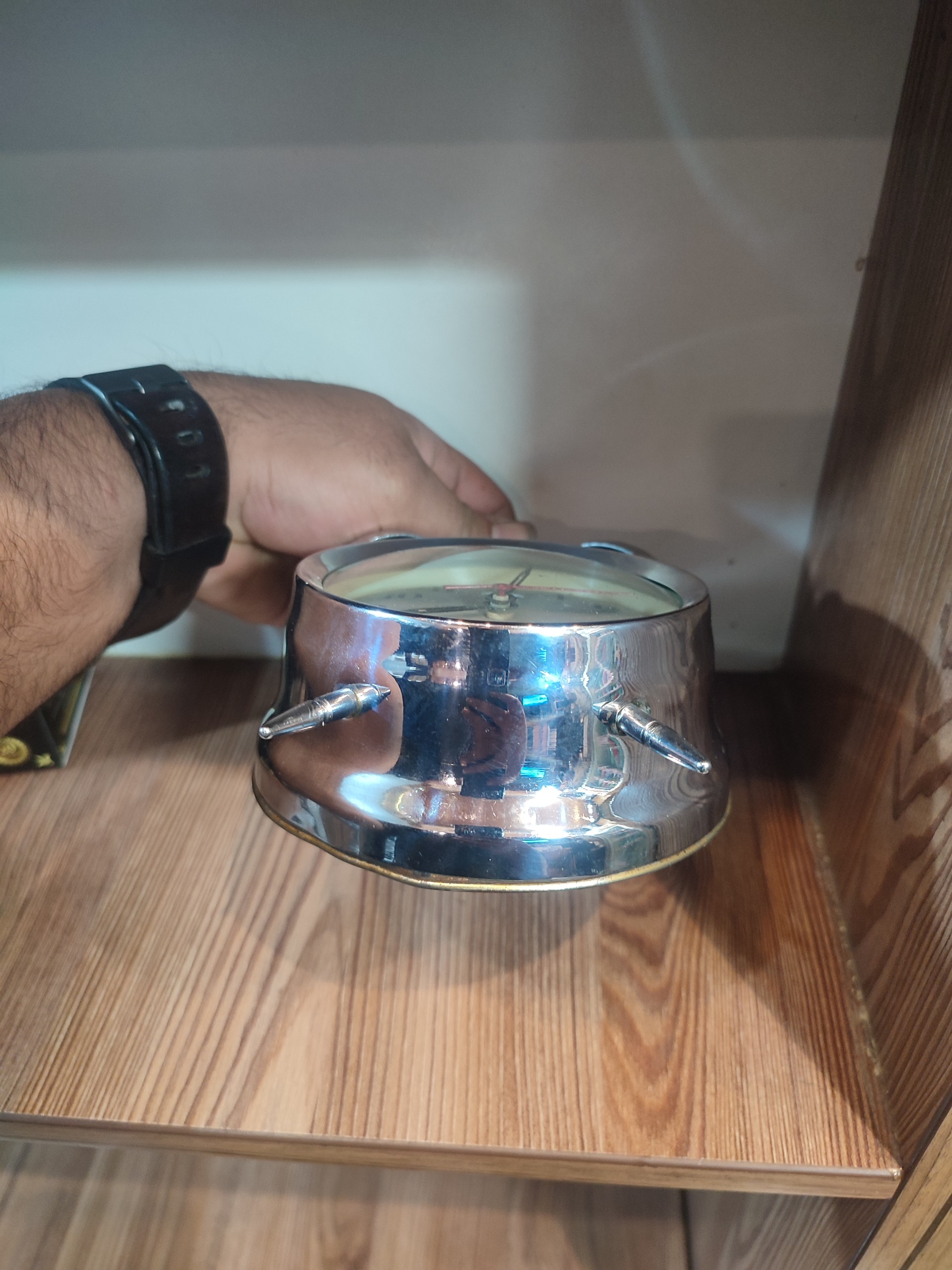 ساعت ساخت چین قدیمی موتور برنجی همه چیز فابریک حتی زنگ هم میخوره ولی کوک ساعتش تمام شده