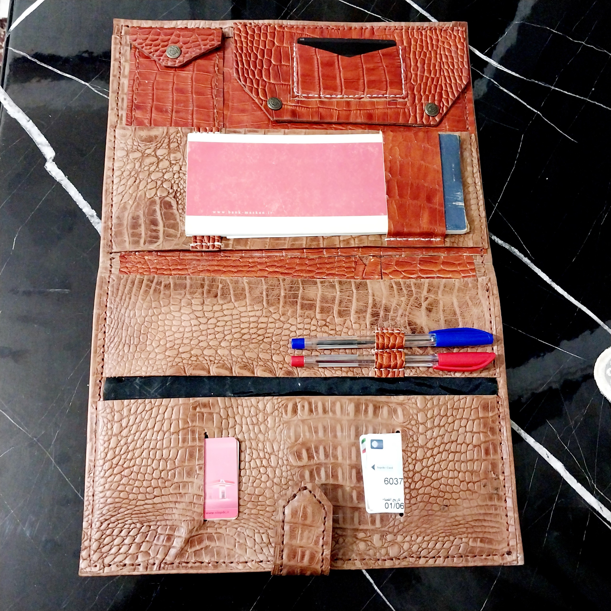 جای دسته چک چندین کارتدجای خودکار کیف مدارک داخلی دوعدد بزرگ وکوچک چرم استفاده شده ده فوت