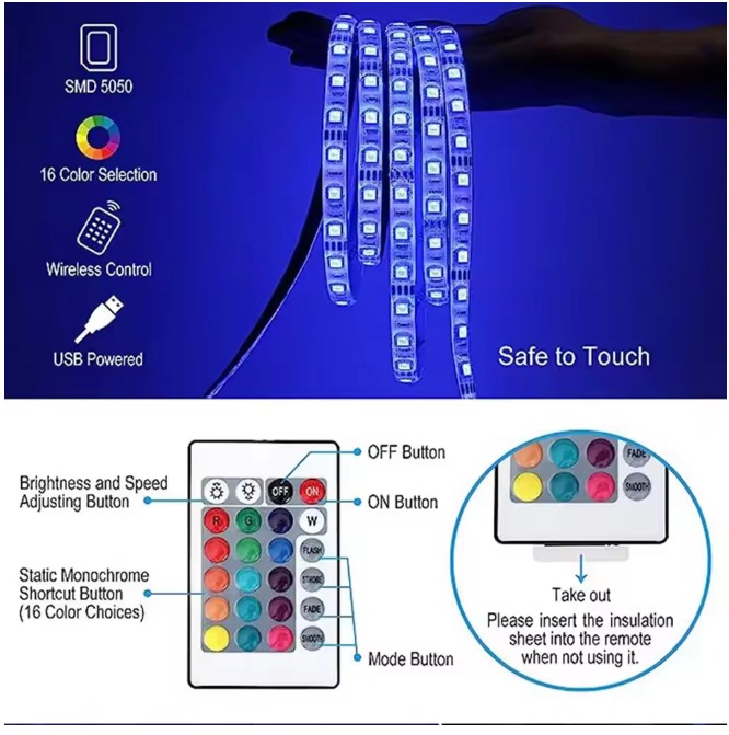 قابل تنظیم در رنگها و حالتهای مختلف برای نورپردازی اتاق، میز یا پشت تلویزیون.