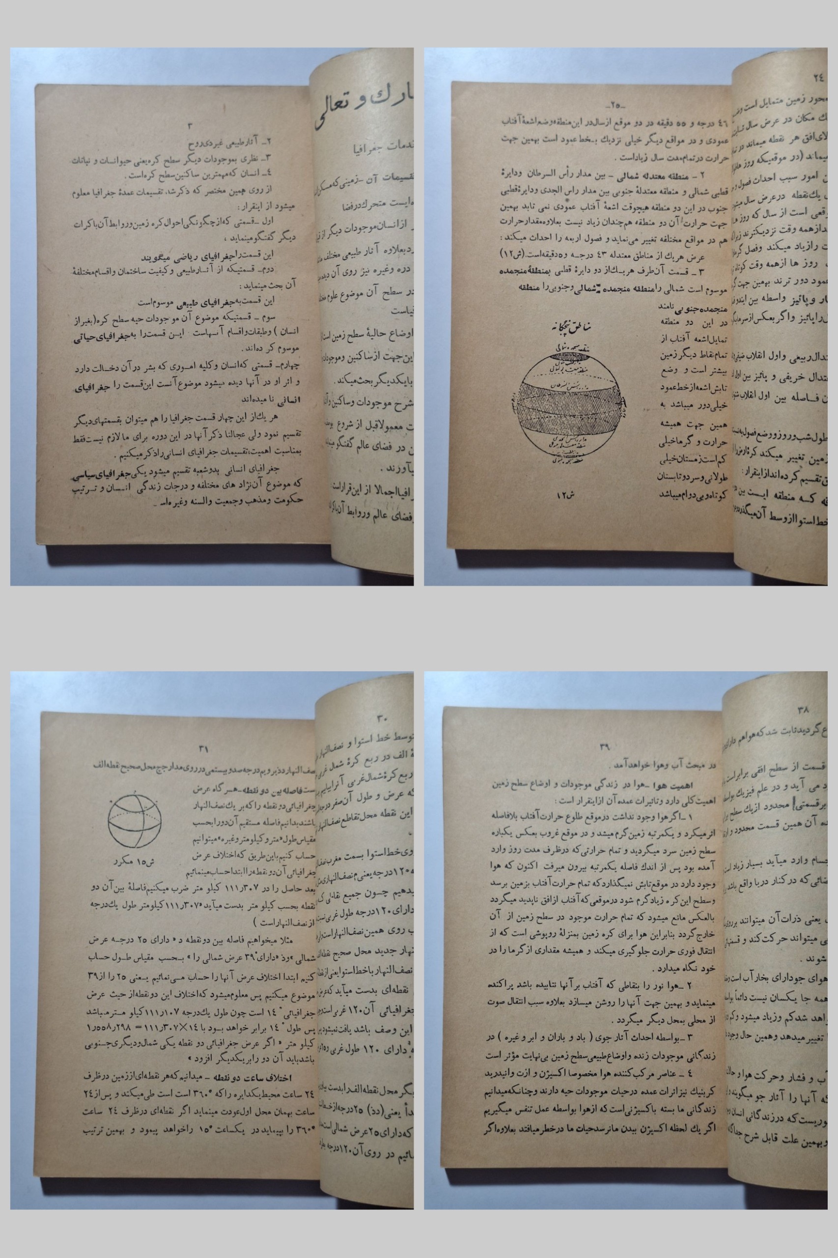 توضیحات:      کتابی کمیاب و ارزشمند با قدمتی بیش از 70سال، در قسمت حاشیه سفید حدود نیمی از صفحات کتاب شکاف چند میلیمتری کم اهمیتی وجود دارد.