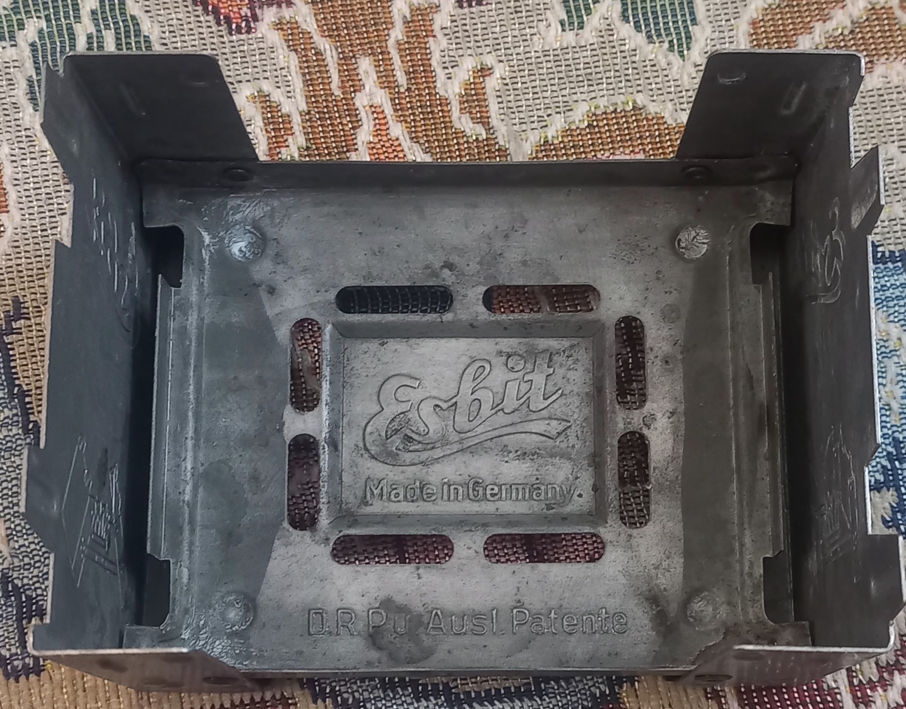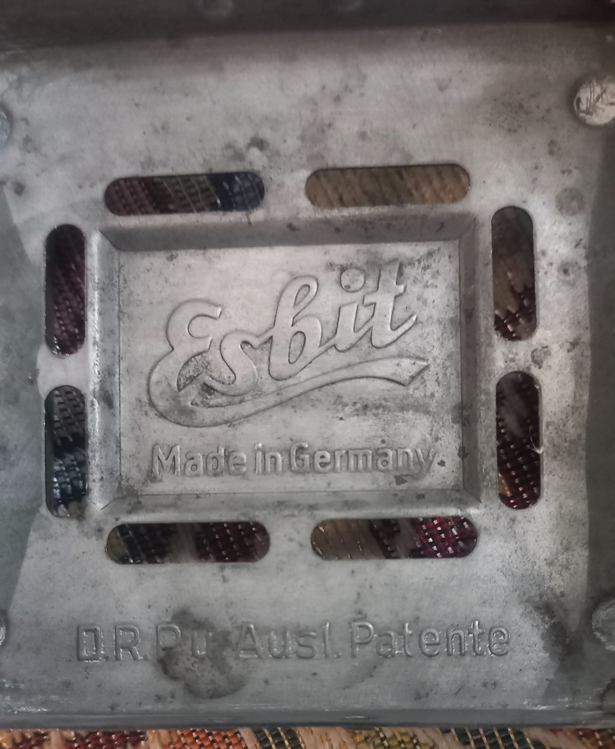 منقل ارتشی قدیمی ساخت کشور آلمان سالم و بدون پوسیدگی و کجی بهمراه 3 حبه قرص الکلی خودسوز مخصوص همین منقل مناسب کوهنوردی و سفر